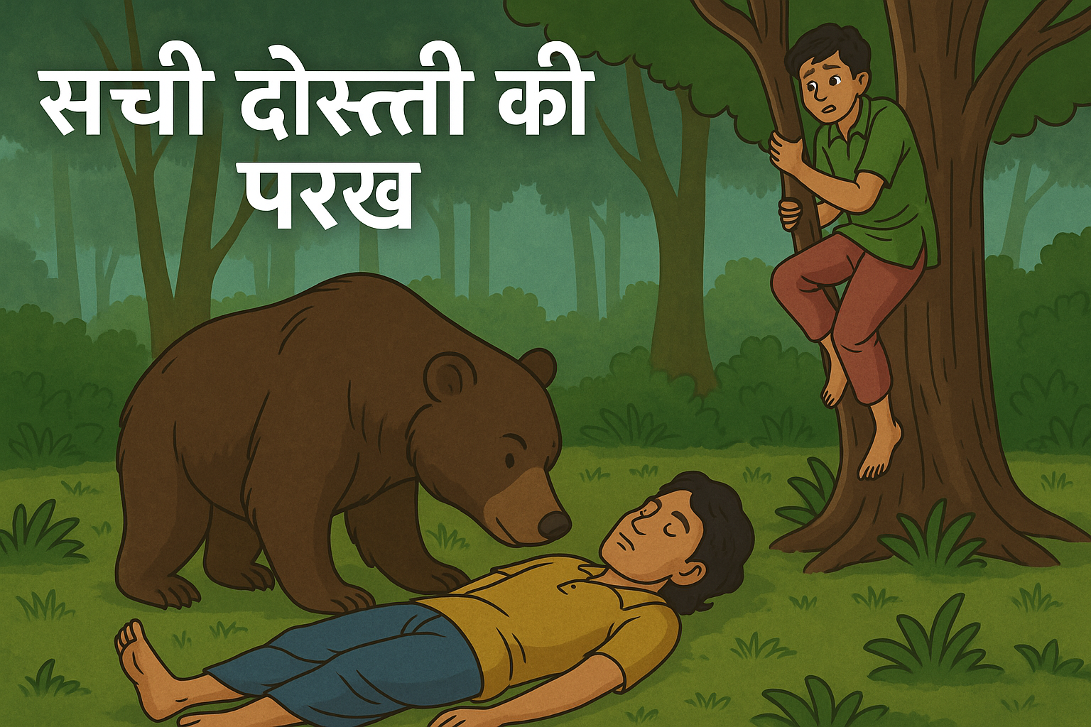 गाँव रामपुर में राजू और मोहन नाम के दो मित्र रहते थे। दोनों की दोस्ती बचपन से गहरी थी। राजू तेज़ और थोड़ा स्वार्थी था, जबकि मोहन शांत और समझदार। एक दिन दोनों लकड़ी काटने जंगल गए, जहाँ अचानक एक बड़ा भालू आ गया। Click